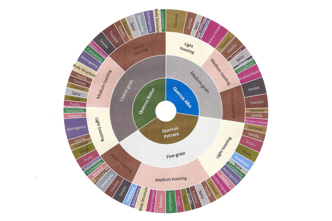 If all of those variations and permutations have sent your head spinning, Dr Picard has created a sensory wheel that conveys the vital information: what flavours are contributed by the various combinations of oak species, grain size and toasting.